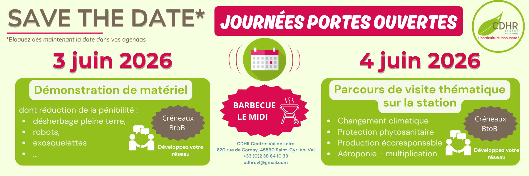 Le CDHR Centre Val de Loire est une association loi 1901, créée pour répondre à la volonté des professionnels de l’horticulture de la région Centre-Val de Loire de s’associer pour développer une structure commune d’expérimentation, de formation, d’accompagnement et de conseil.